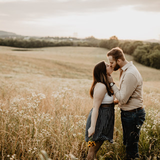 You know how you dream about certain moments coming together and just being perfect? Well, that is what happened for Taylor + Breana's golden hour engagement session. When I first discussed the vision for what Breana wanted for their photos we talked about doing a "Notebook" themed session at a local lake. I always have bright ideas, but as my friends will tell you they don't always go as planned. Nevertheless, I persist and hope they all work out and sometimes it pays off. This session was absolutely perfect for these two. They both love the outdoors so the locations were perfect and the sunset over the rolling hills of Normandy, TN could not have been more stunning. This session made my "Golden Hour Dreams" come true.